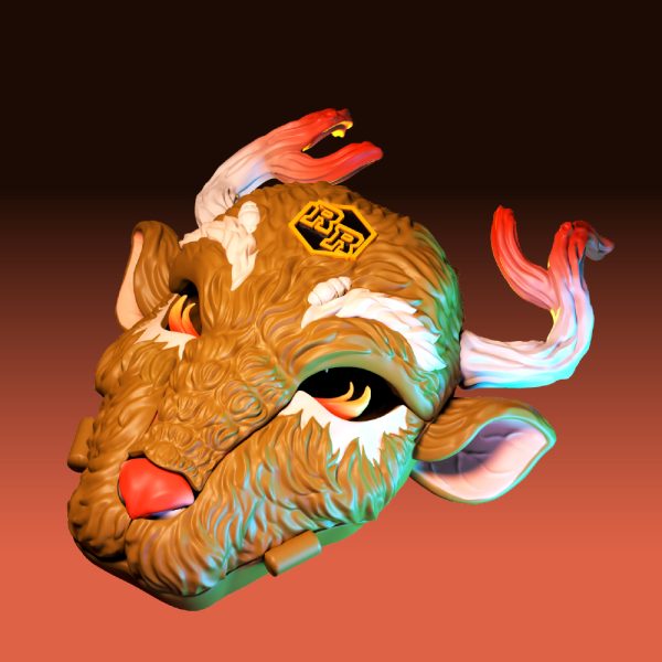 This collectible storage toy draws inspiration from Celtic mythology and Druidic beliefs, blended with the imagery of the ancient Białowieża Forest of Northern Europe. In its closed form, the scene resembles a haunting deer face, covered in warty, shell-like textures and sinister glowing eyes. When opened, it reveals an ancient altar nestled in the heart of the forest, where twisted-spine cultists conduct dark ceremonies.
