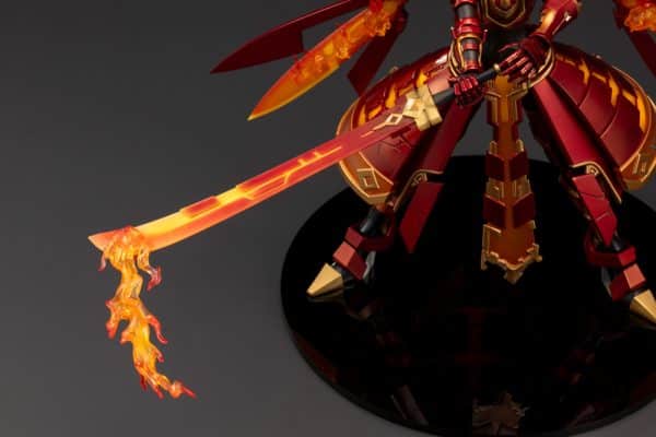 While sculpted in the same scale as Sky Striker Ace – Raye and Sky Striker Ace – Roze, this piece far surpasses the previous ones in volume, making for an outstanding display. Fine details that cannot be seen on the card have been recreated with precision, such as the features in the armor, weapons, and wings on the back.