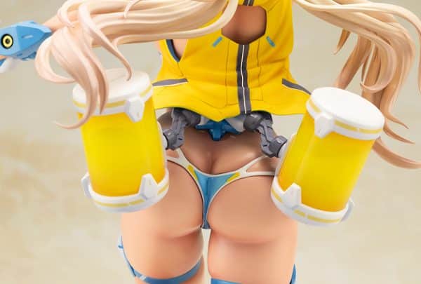 The traditionally Japanese-styled mecha parts that adorn Asra Ninja have been vastly changed in favor of various clear parts that bring out the refreshing atmosphere of an everlasting summer. Pay close attention to the many alluring features in this piece, such as the tight fit of the mecha parts that accentuate her tanned, glamorous body, and the care placed into the sculpt down to each joint to fully show off her sensuality.